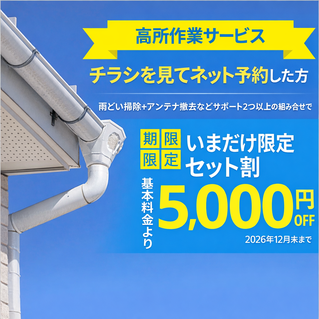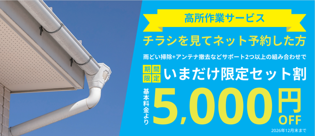 雨どい清掃、2階以上の窓清掃、外壁や屋根まわりの点検・軽作業など、ご自身で行うには危険が伴う高所作業を、経験豊富なスタッフが安全・確実に対応します。